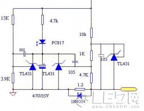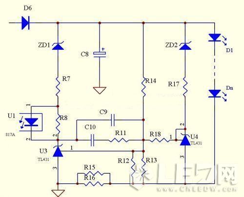 由于TL431是2.5V基準,故恒流取樣電路的損耗極大,不適合做輸出電流過大的電源。而此電路的致命缺陷是不能空載,故不適合做外置式的LED凈化燈電源,所以下面我們對線路的一些缺陷進行了改進。