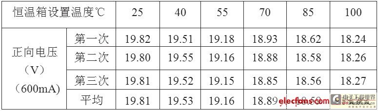 式中Vf為LED光源的正向壓降,Tj為結溫。需要注意的是,不同廠家不同規格的LED產品雖然都符合上述趨勢,但具體數據卻有一定的差異,因此更換廠家后規格型號需重新試驗。
