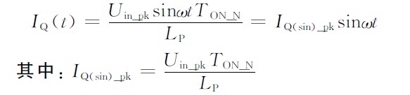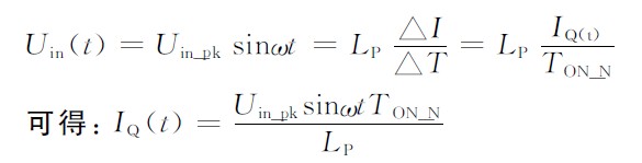 假設(shè)導(dǎo)通時間為常數(shù):TON_N = 常數(shù)(const),則上述MOS導(dǎo)通電流各點峰值IQ(sin)_pk組成的包絡(luò)就形成了正弦規(guī)律。