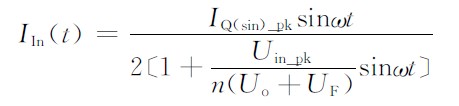 次級二極管瞬時峰值電流為ID(t),根據(jù)勵磁電流引起的磁通不能突變原則可知:ID(t)=n IQ(t)=nIQ(sin)_pksinωt,且等式LP =n2 LS成立,其中參數(shù)n為變壓器的初、次級匝數(shù)比。